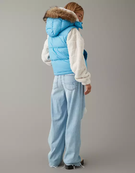 AE Faux Fur Hooded Puffer Vest
