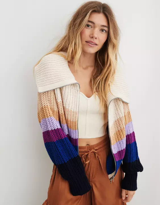 Aerie Double Zip Cardigan
